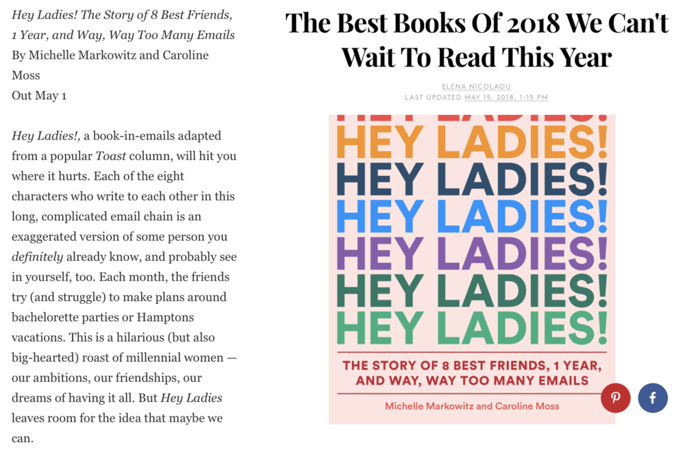 Based on the column of the same name that appeared in The Toast, Hey Ladies! is a laugh-out-loud read that follows a fictitious group of eight 20-and-30-something female friends for one year of holidays, summer house rentals, dates, brunches, breakups, and, of course, the planning of a disastrous wedding. This instantly relatable story is told entirely through emails, texts, DMs, and every other form of communication known to man.